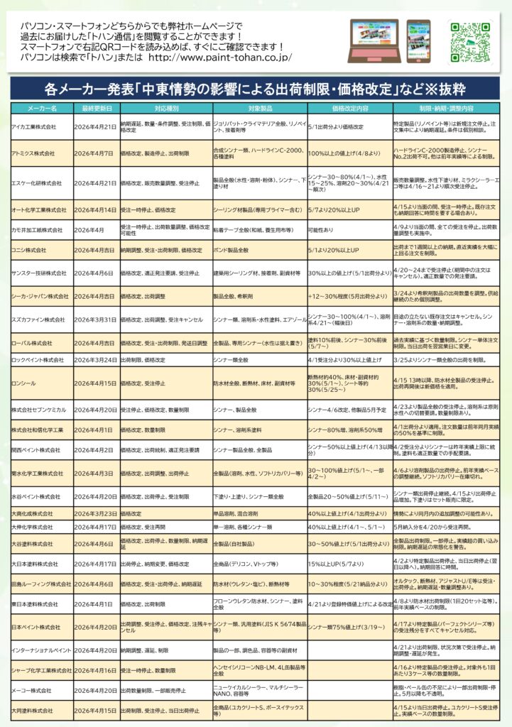 建築業界・塗装業界にも確実に波及しています。